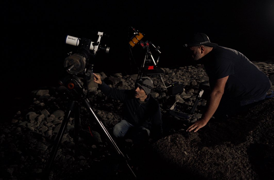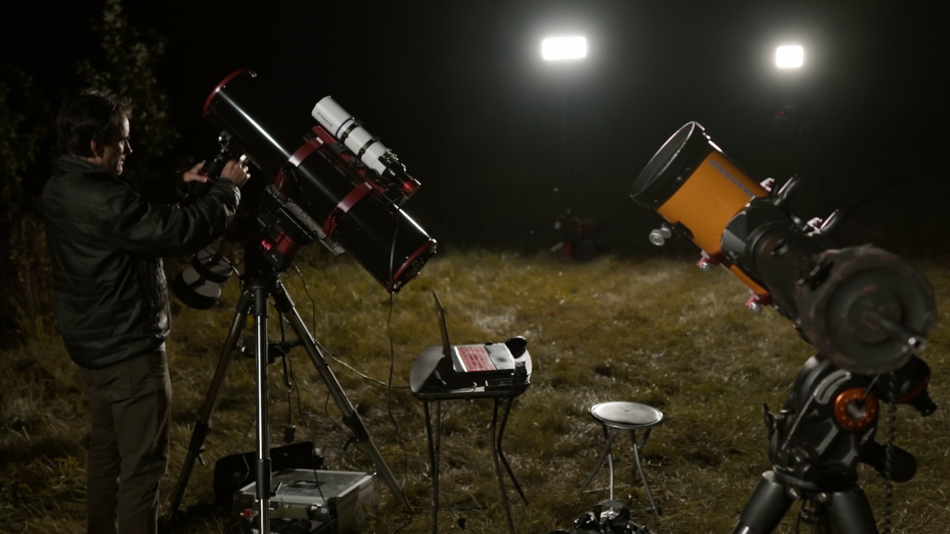 Équipement pour observer Barnard 174 et Rho Ophiuchi. Pour Barnard 174 (télescope orange) : télescope Takahashi Epsilon 130ED F3.3, 430mm avec caméra QHYCCD 268 Couleur. Pour Rho Ophiuchi (télescope blanc) : Objectif photo Canon 70-200mm F2.8 avec caméra