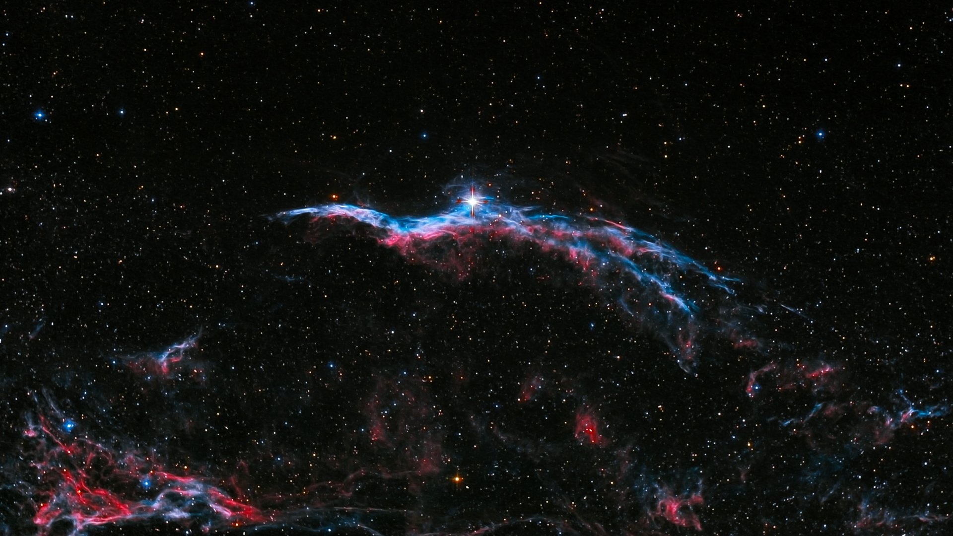 Nébuleuse du Voile (NGC 6960) : reste de supernova qui constitue la partie ouest des Dentelles du Cygne à une distance d’environ 1200 années-lumière (photo: Stéphane Simard)