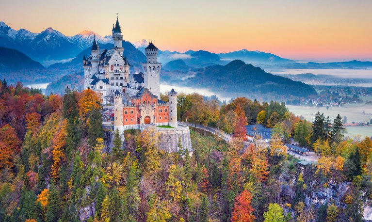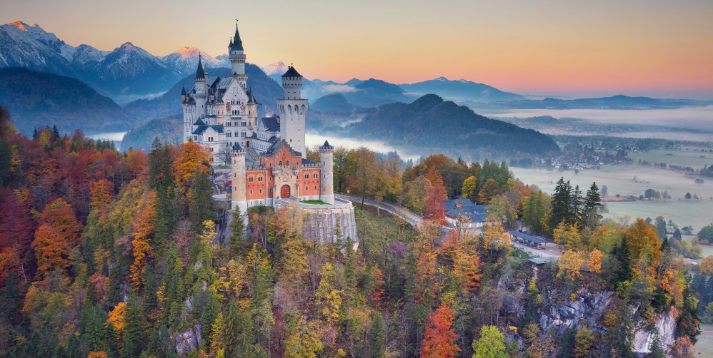 Le château de Neuschwanstein, situé au sommet d’un pic rocailleux en Bavière, a la réputation d’être le plus célèbre d’Allemagne. Sa construction s’est terminée en 1886.