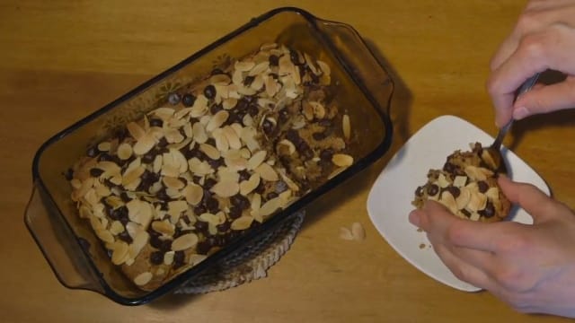 4. Saupoudrer 1/4 t. de pépites de chocolat et 1/4 t. d'amandes effilées.