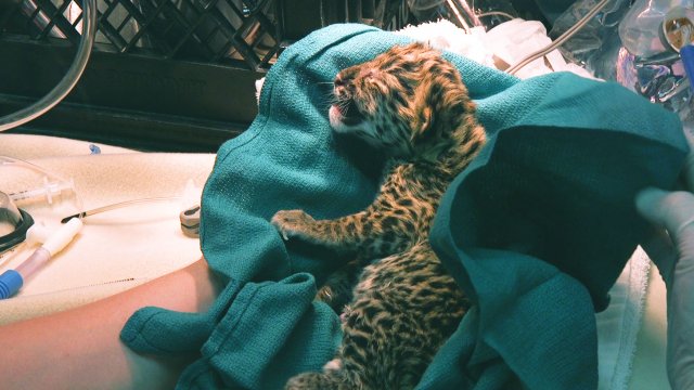 La naissance par césarienne chez le léopard de l’Amour est un événement aussi rare qu’exceptionnel. La femelle Megan a eu des problèmes lors de la mise bas par le passé ce qui justifie le choix de cette intervention.