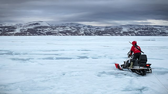 Le plongeur en eau glacée rend hommage au savoir-faire des guides Inuit sans lesquels il aurait été impossible de tourner le documentaire Odyssée sous les glaces.