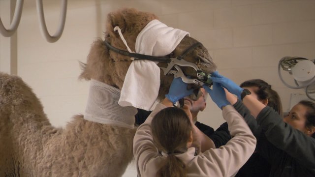 L'hiver dernier, suite à l'observation d'un écoulement nasal inhabituel chez Shawn, l'un des dromadaires sous les soins du Zoo de Granby, il a été amené à la Faculté de médecine vétérinaire - UdeM de Saint-Hyacinthe qui est doté d'équipements spécialisés pour les animaux de cette taille. Voyez comment ils sont parvenus à soigner Shawn qui se porte très bien, encore aujourd'hui!