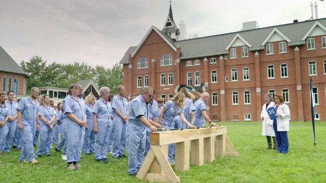 Les cobayes du Gros laboratoires se prêtent à une expérience pour déterminer si crier permettrait de décupler les forces.