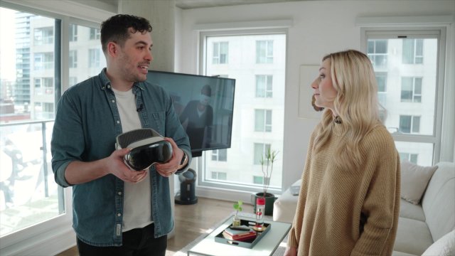 Marie-Audrey Houle a la chance d'essayer le Vision Pro d'Apple avec un concepteur d'application montréalais qui développe son jeu pour ce casque.